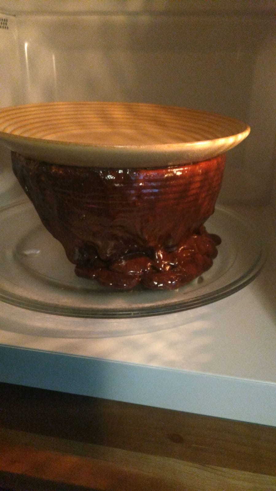 Não tem muito o que fazer. Raspo tudo desse pote, do prato que tampa e do prato do microondas e coloco em outro pote. Tiro tudo e lavo o prato do microondas, deixando o resto na pia do banheiro (já falei que lavo a louça na pia do banheiro?). Aí continuo o processo, vigiando. Quando começa a subir, paro o microondas, abro e mexo bem pra ele baixar de novo. Enfim, consigo fazer, coloco num pote e levo pra eles. Jolyn já prova na hora, adora e diz que nem vai contar pro Tyler. Sacanagem!