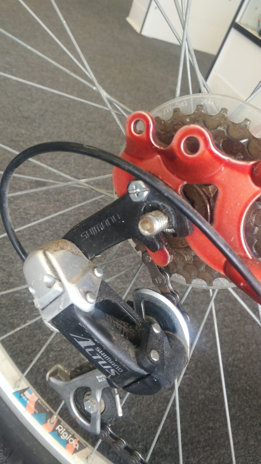 Fui analisar a mountain bike mais de perto. Ela parecia estar boa em quase tudo, só faltando uma porca que segura a roda de trás. Olhei e tinha até teia de aranha. Ou seja, deve ter ficado largada num canto um bom tempo. Tem arranhões na pintura e em praticamente todo lugar e está meio suja. Reparo que a borracha do punho direito está solta, partida ao meio, mesmo. Nisso um cara se aproxima, asiático, e comenta que é uma bicicleta muito boa, que ele pensou em comprar, que só falta a porca. Pergunto se ele vai levar, diz que não, mas que é fácil consertar. Fico me perguntando por que diabos ele resolveu se meter, mas acho que estava só sendo simpático. Decido levar essa, mesmo, e faço os consertos necessários.