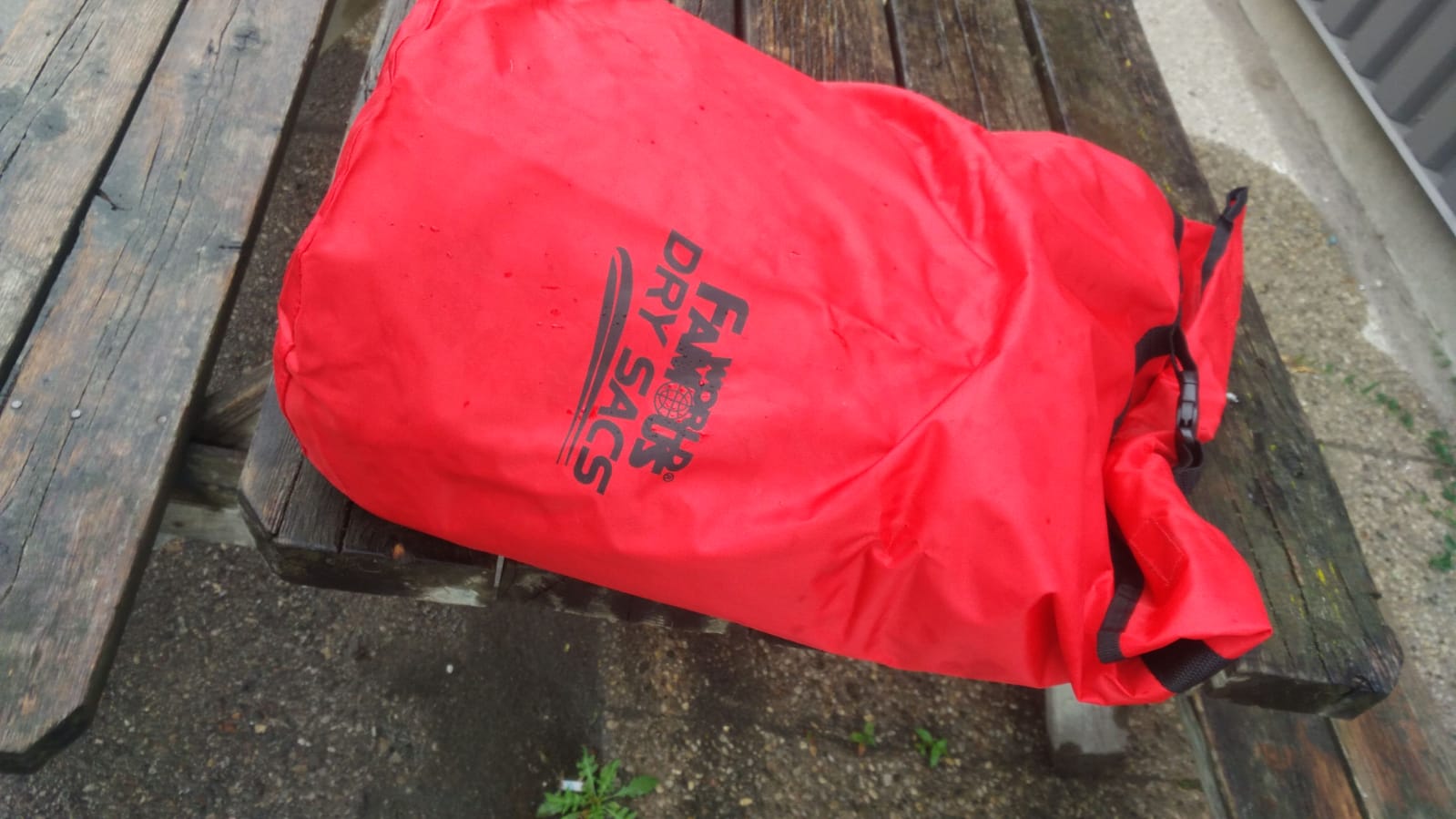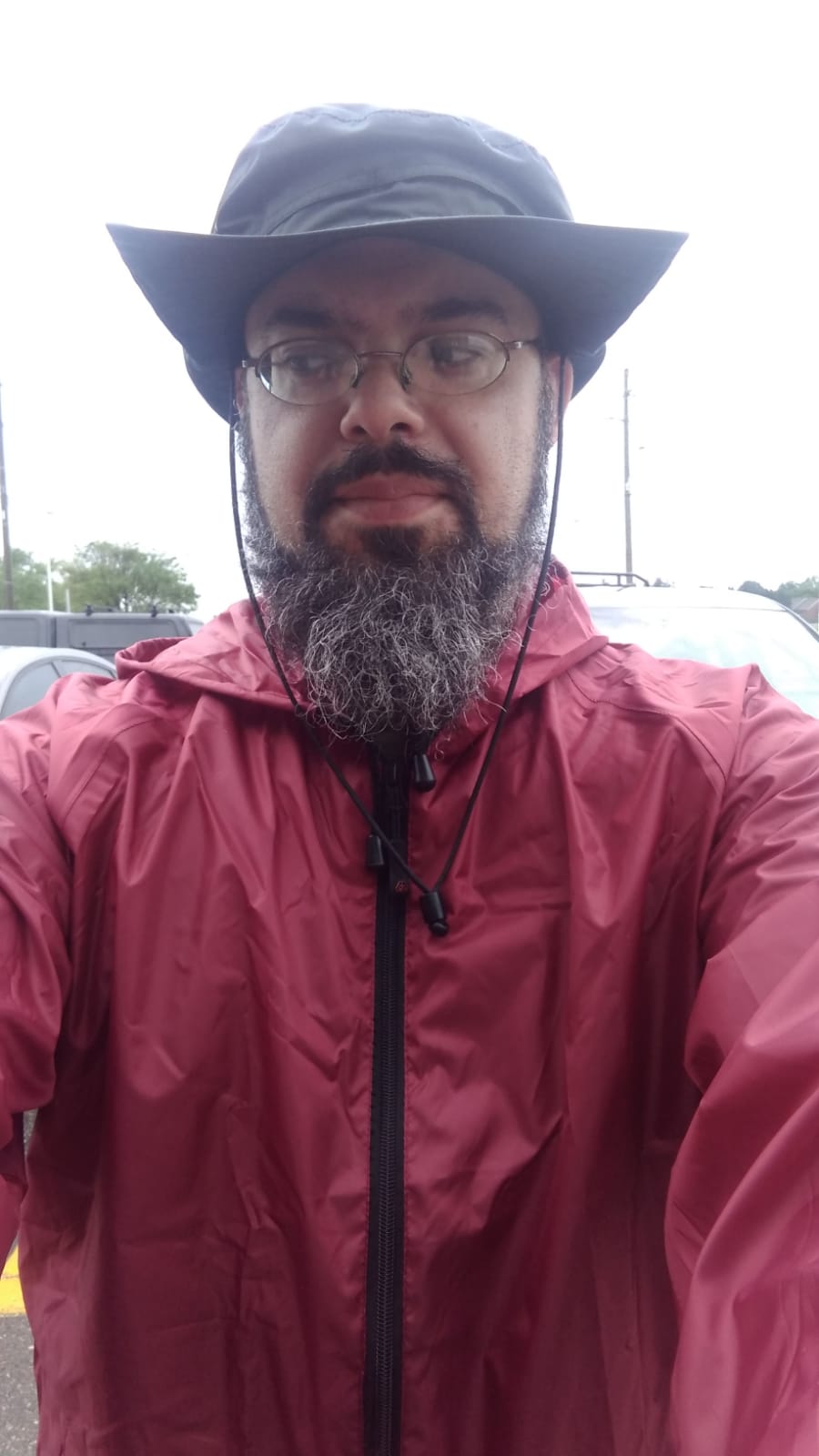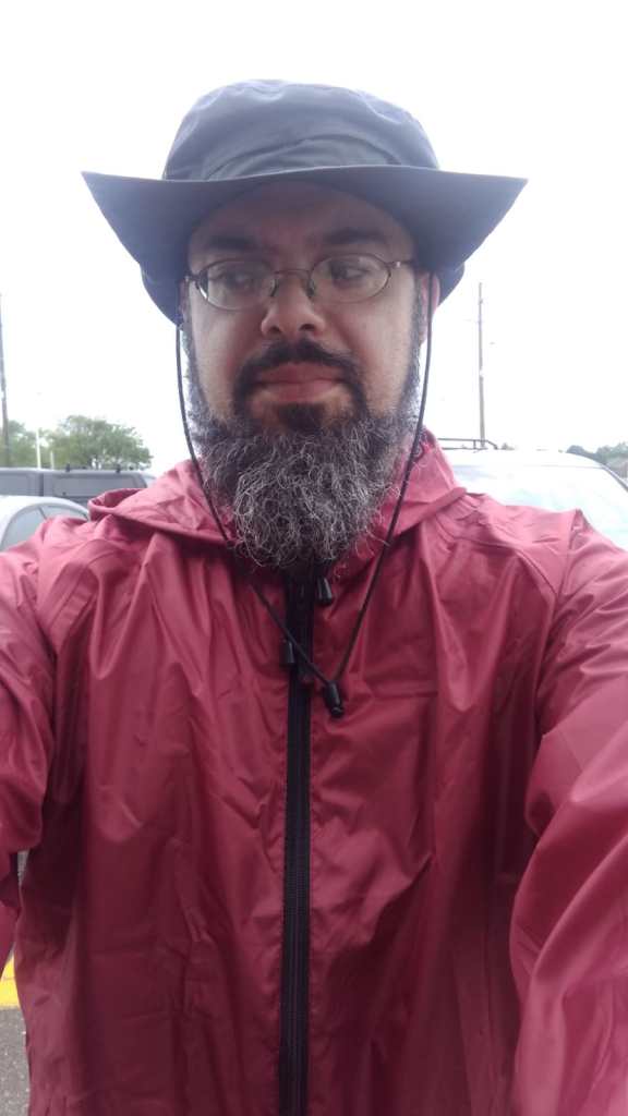 Chegando lá, vou direto nas coisas que preciso, pra não demorar muito. Entre outras coisas, pego uma bomba de chão com manômetro, que pneus diferentes precisam ser inflados a pressões diferentes e isso é bem importante pra manutenção e bom funcionamento. Quando vou sair, chove a cântaros. Lembro da parte de acampamento/militar, volto e compro uma bolsa impermeável em que cabe a mochila certinho e uma jaqueta impermeável com capuz, das mais simples e baratas. Fila de novo, pago de novo, e já parou de chover quando vou sair, mas continua ameaçando. Coloco a mochila na bolsa, visto a jaqueta e vou pra Ziggys Cycles, uma loja especializada em bicicletas, pra comprar a tranca pra bicicleta nova. Prendo a Helô na estacicleta e entro.