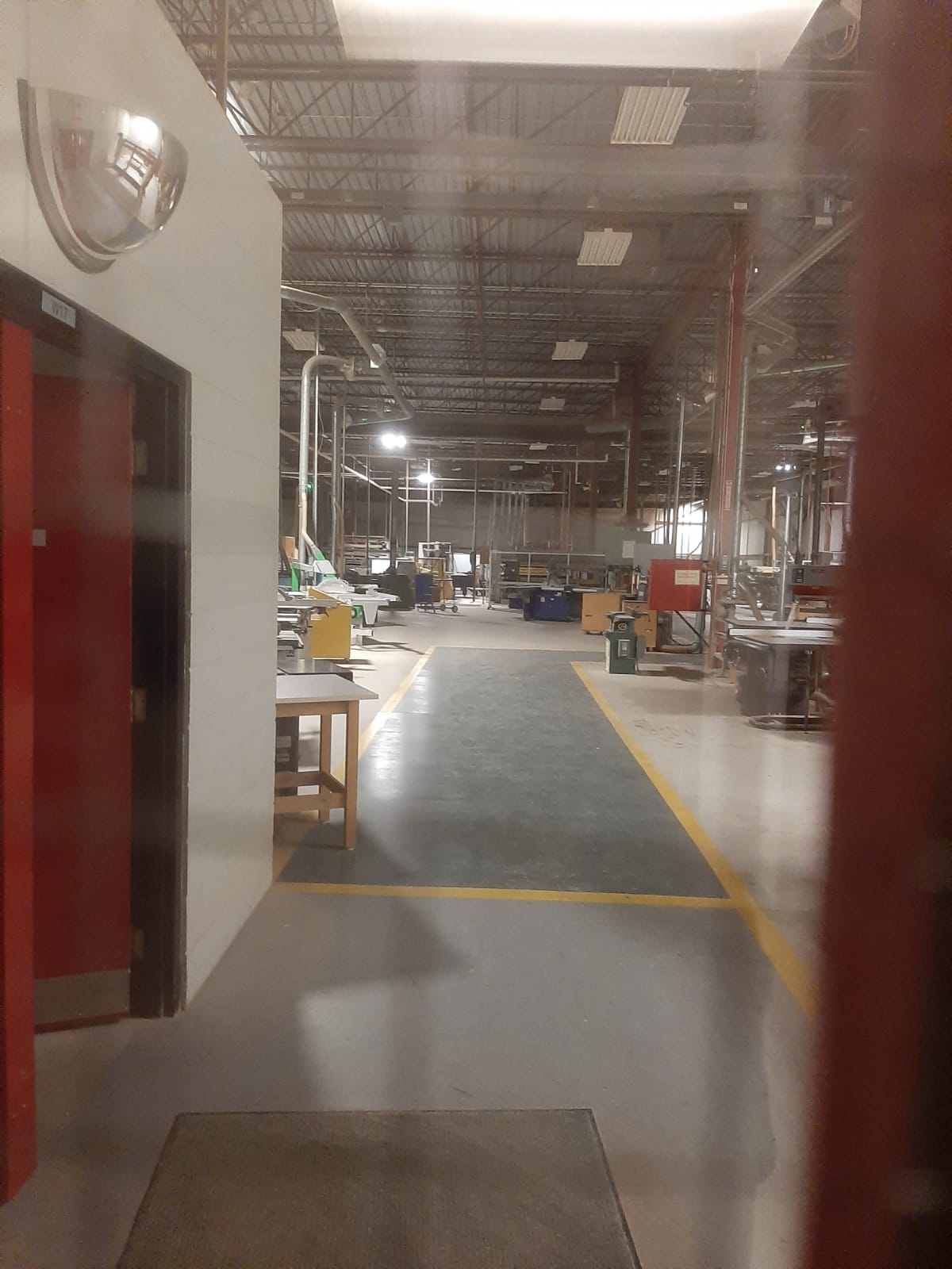 Fomos também no prédio de trabalhos com madeira – eu já falei isso, aliás? Se sim, falo de novo: a parte de trabalhos com madeira tem seu próprio prédio, porque a gente é foda. Mentira, é porque precisa de muitas máquinas e espaço, mesmo, faz uma barulheira danada e consome muita energia elétrica, além de produzir bastante lixo, então precisa de um prédio próprio. Não deu pra entrar nas oficinas, claro, porque estavam trancadas, mas tirei uma fotinha pelo vidro pra dar uma ideia.